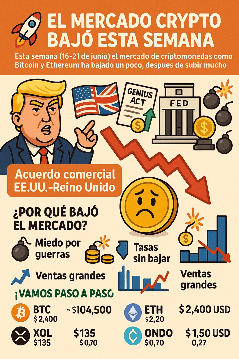 🚀 Diese Woche (16.-21. Juni) ist der Kryptowährungsmarkt wie Bitcoin und Ethereum ein wenig gefallen, nachdem er zuvor stark gestiegen war. Ich erkläre dir, was passiert ist, was es bedeutet und was du tun kannst, wenn du neu dabei bist. Lass uns Schritt für Schritt vorgehen!