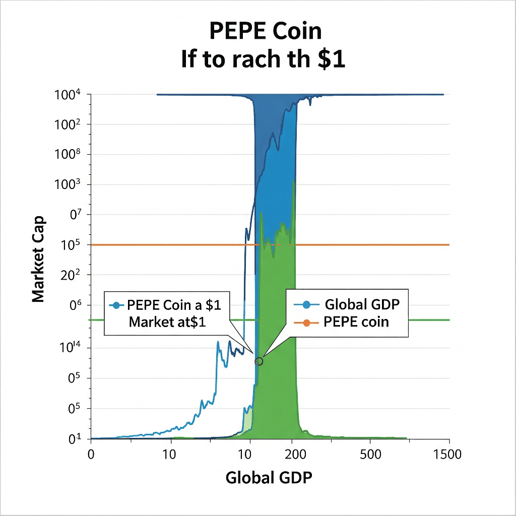 Die Idee von $PEPE , einer beliebten Meme-Münze, die die 1-Dollar-Marke erreicht, ist eine gängige Fantasie unter Krypto-Enthusiasten. Ein schneller Blick auf die Fundamentals des Tokens und die globale Wirtschaft zeigt jedoch, dass dies ein unglaublich unrealistisches Szenario ist.