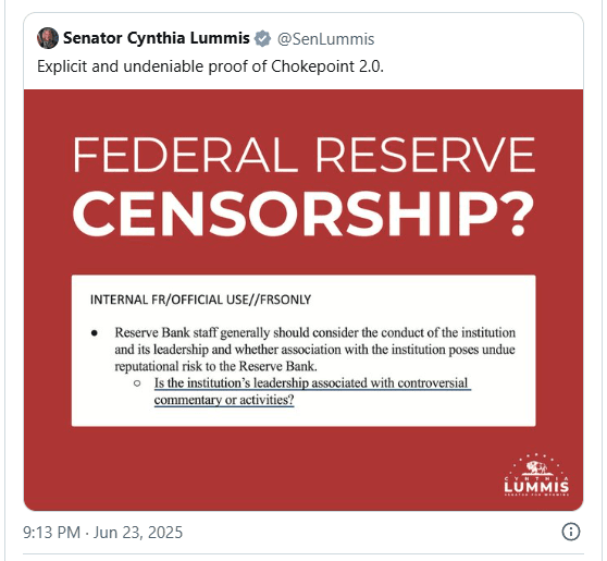 Lummis, eine pro-Krypto-Gesetzgeberin aus Wyoming, hat sich lautstark für die Notwendigkeit einer regulatorischen Klarheit im Krypto-Bereich ausgesprochen und kritisiert, was sie die “Hinrichtung” von Unternehmen für digitale Vermögenswerte in den USA durch aggressive regulatorische Praktiken nannte.