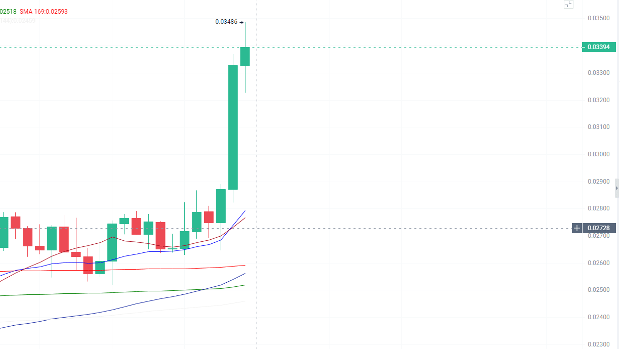 Einzige Bedingung: Volumen muss $0.035 durchbrechen und für 2 Stunden stabil bleiben.