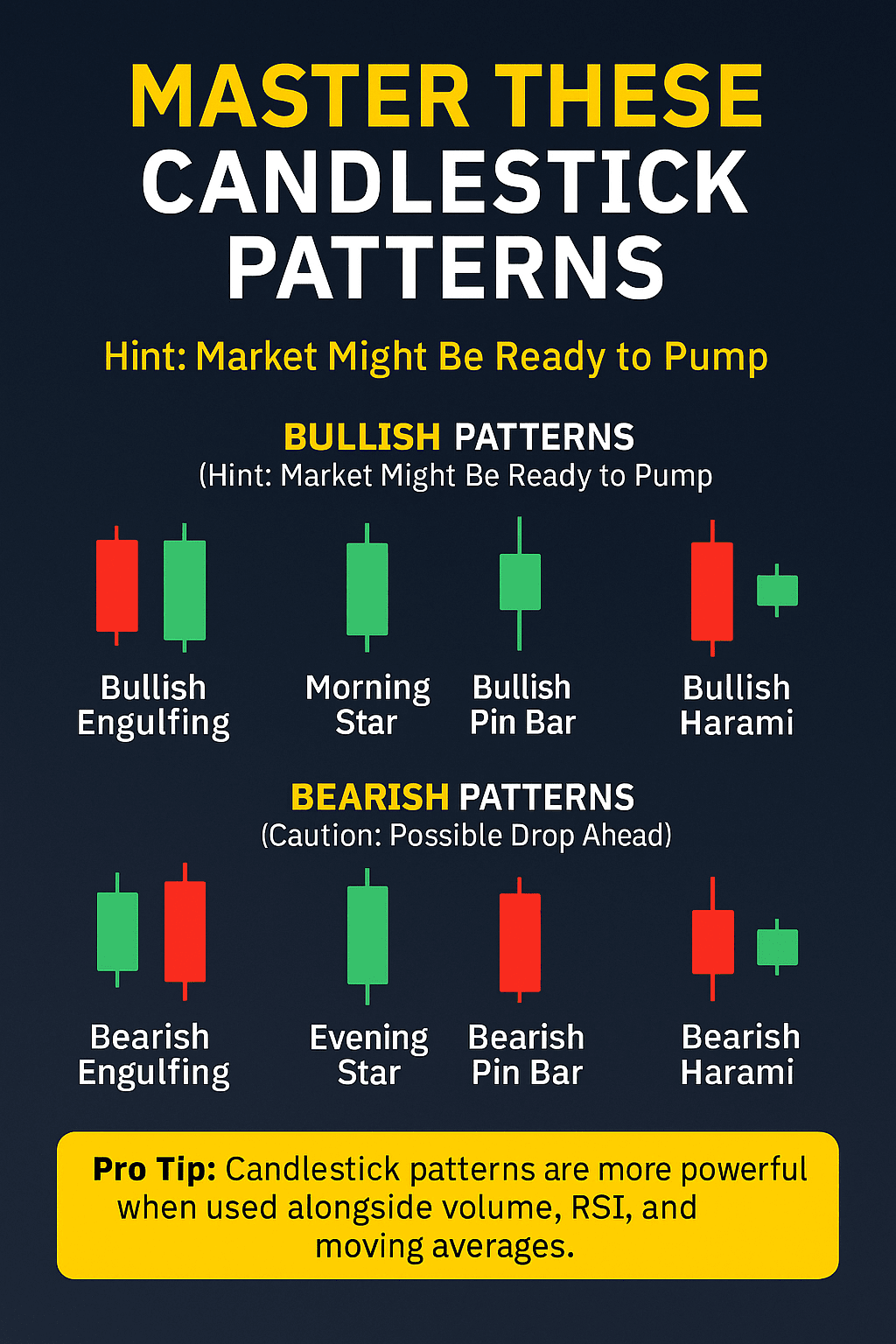 Diese Muster werden WESENTLICH kraftvoller, wenn sie mit Indikatoren wie RSI, Volumen und gleitenden Durchschnitten verwendet werden. Verlassen Sie sich niemals allein auf Kerzen — stapeln Sie Ihre Bestätigungen. 🔍✅