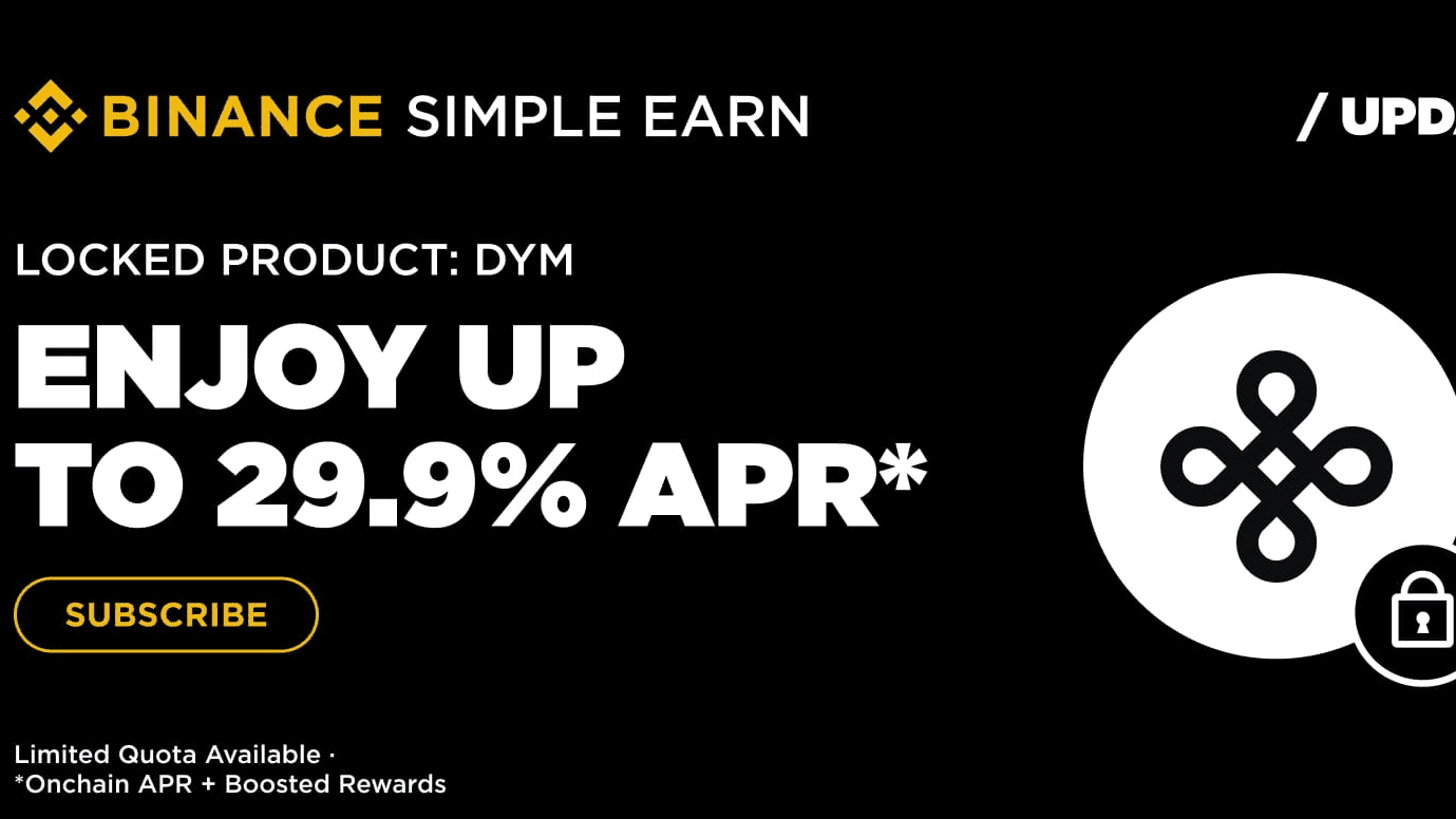 Suchen Sie hohe Renditen in der aktuellen Krypto-Landschaft? Binance bietet eine goldene Gelegenheit: Sperren Sie heute Ihr DYM und verdienen Sie tĂ€gliche Belohnungen von bis zu beeindruckenden 29,9 % APR. Mit flexiblen Bedingungen, einfachen Schritten und starkem Potenzial ist dieses Angebot maĂgeschneidert fĂŒr Rendite-Suchende und Dymension-Enthusiasten.