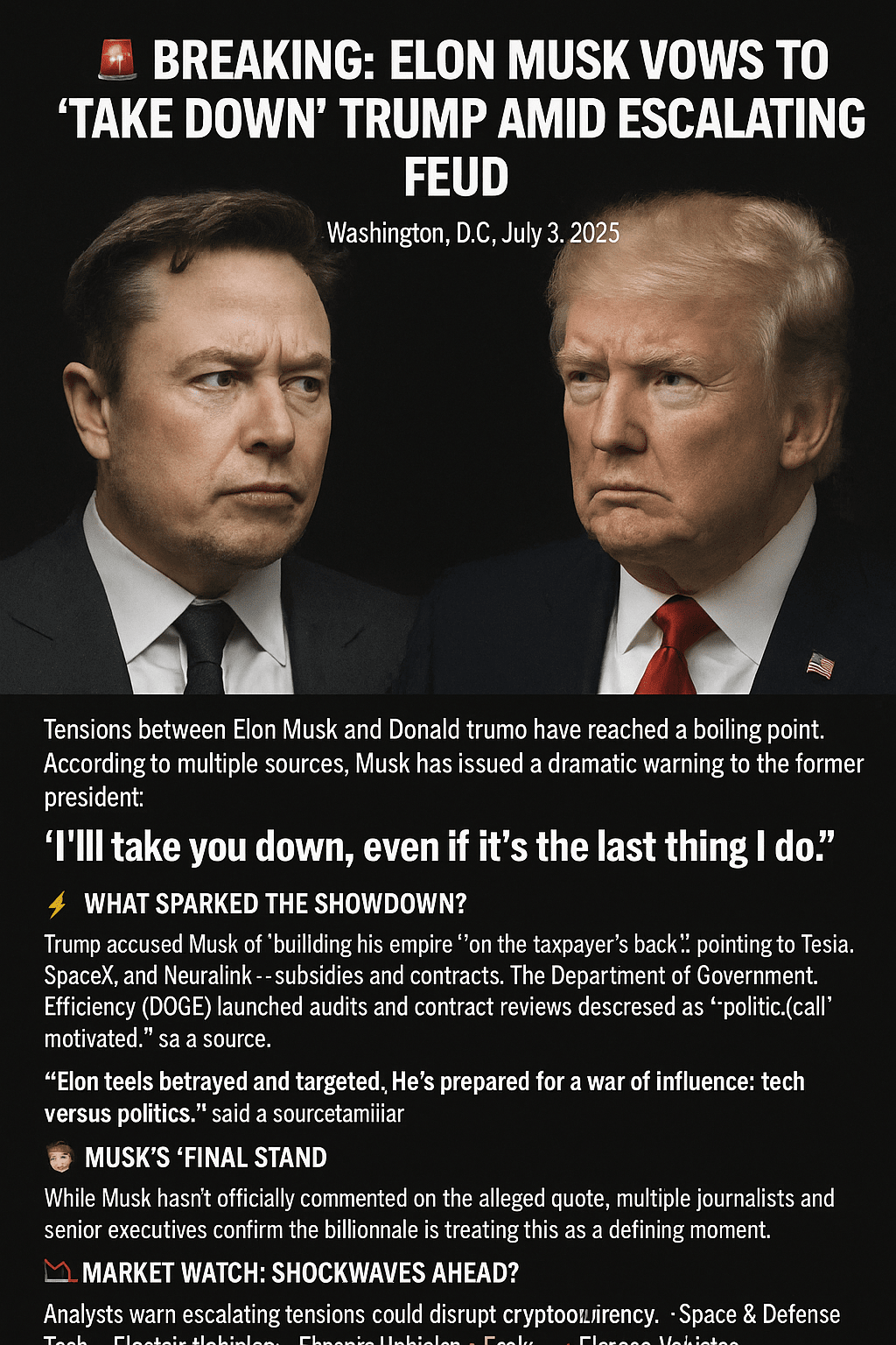 🚨 BREAKING: Elon Musk schwört, Trump inmitten eskalierender Feindseligkeiten "zu Fall zu bringen"
