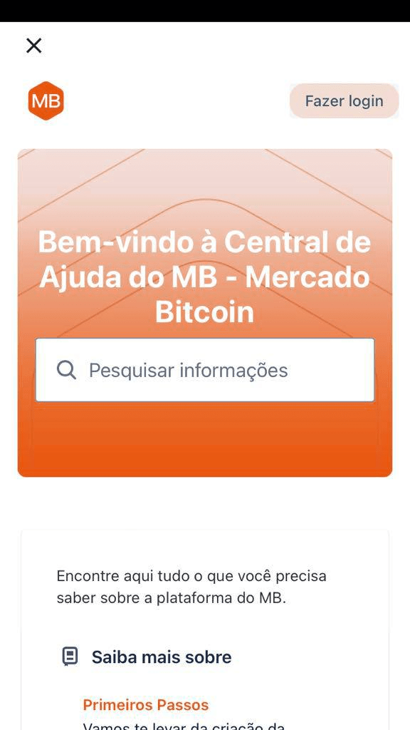 Im Markt Bitcoin erwies sich der Prozess als weniger flüssig und wenig intuitiv. Beim Versuch, über die App auf den Support zuzugreifen, war es notwendig, ins Profil zu gehen, Hilfe zu suchen und dann einen neuen, separaten Login für den Supportbereich durchzuführen — getrennt vom Hauptkonto. Nach diesem Schritt war die einzige verfügbare Option, ein Ticket über ein Formular zu eröffnen, ohne die Möglichkeit eines Echtzeit-Chats. Dieses Modell ist für dringende Situationen oder solche, die eine sofortige Lösung erfordern, unzureichend.