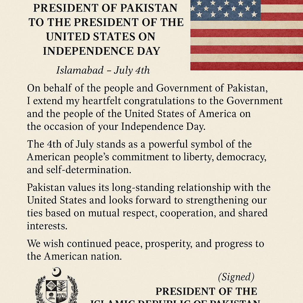 2. Premierminister Shehbaz Sharif gratuliert dem US-Präsidenten und dem amerikanischen Volk anlässlich des Unabhängigkeitstags der USA.