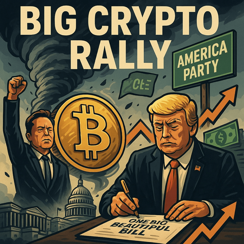 Wenn man die Steuererleichterungen und das trillionenschwere Defizit, die politische Spaltung um Musks neue Partei, die bevorstehenden bahnbrechenden Krypto-Gesetze und die Aktivitäten der Wale zusammenfasst, deutet alles darauf hin, dass uns bald große Volatilität und massive Geldzuflüsse in den Markt erwarten, also seien Sie bereit!