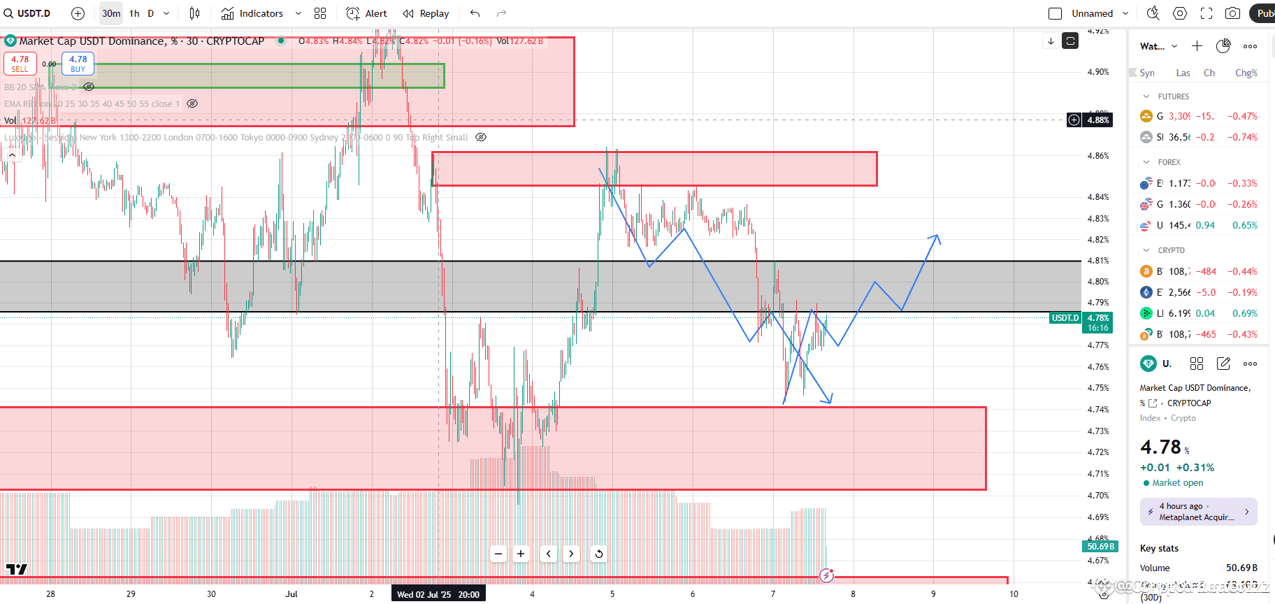 We can see that USD DOM is bullish meaning a bullish on Crypto currency. I have marked on this chart how will it work.