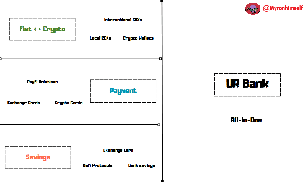Ersparnisse: On-Chain-Protokolle, Börsenanlage, traditionelle Banken (kann sich auf die Bank konzentrieren, um von Stablecoins und privaten Ketten zu Ersparnissen überzugehen).