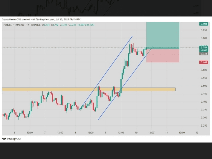 $PENDLE hat einen steilen aufsteigenden Kanal befahren, hat den wichtigsten Widerstand bei $3.50 durchbrochen und die bullische Struktur aufrechterhalten. Nach einem scharfen Anstieg konsolidiert sich der Preis an der oberen Trendlinie – bildet eine Bull Flag, die oft eine Fortsetzung signalisiert, wenn sie von einer Volumenausweitung gefolgt wird.