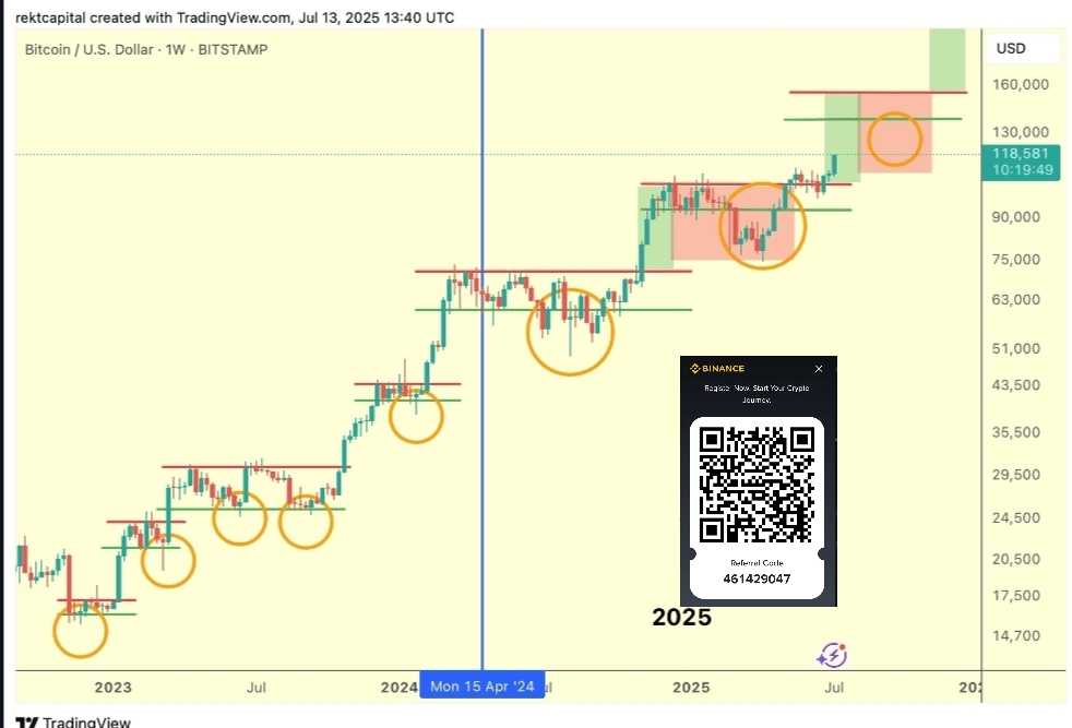 $BTC hat ein wichtiges Widerstandslevel zwischen 119.000 $ und 120.000 $. Aber danach gibt es viel Potenzial nach oben,” sagt Trader und Investor Niels, Mitgründer des Web3-Beschleunigers und Inkubators Ted Labs. „Wenn $BTC es schafft, über 120.000 $ auszubrechen, wird der Weg zu 135.000 $-140.000 $ geöffnet. Im Falle einer Ablehnung könnte BTC 114.000 $-115.000 $ erneut testen, bevor es zu einer Umkehr kommt.” Spielraum für 50% Gewinne?