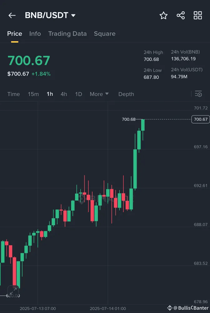 $BNB hat gerade die $700-Marke überschritten — was für ein Move! 💥