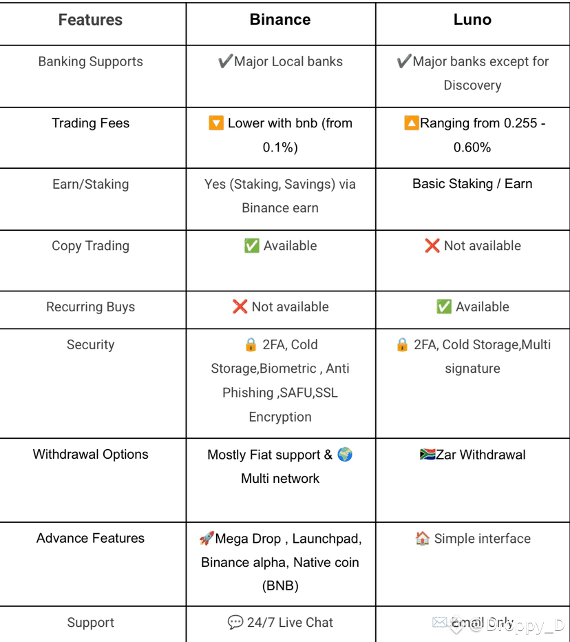 ZAR-Einzahlungsarten & Gebühren im Vergleich: Binance vs Luno