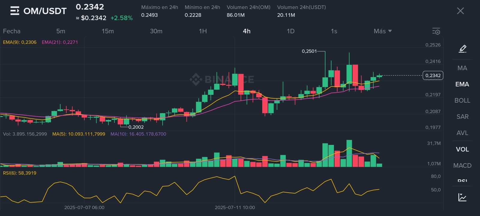 Der aktuelle Preis von OM liegt zwischen $0.22 und $0.24 .