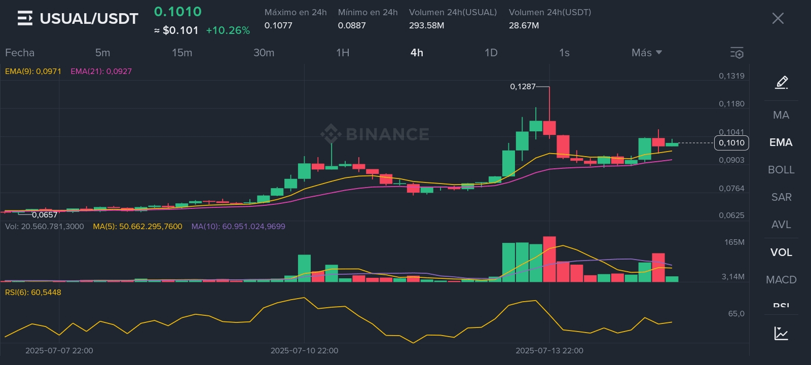 Intraday-Bereich: Minimum ≈ 0.0893 USD, Maximum ≈ 0.1064 USD