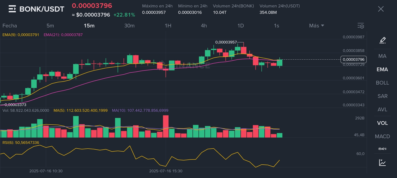 BONK zeigt eine starke technische Struktur, unterstützt durch institutionelles Volumen, Token-Burn und technischen Impuls. Der vorgeschlagene Plan zielt darauf ab, bei Rücksetzungen einzusteigen, skalierende Take-Profit-Ziele zu verfolgen und das Risiko aktiv zu managen. Denke daran, dass dies ein Instrument mit sehr hoher Volatilität ist; überprüfe ständig Nachrichten und Volumen.