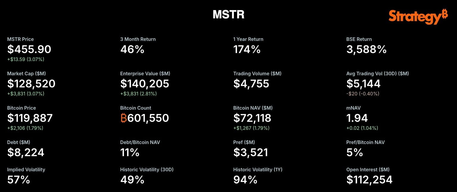Konkret stieg die MSTR-Aktie um 3,07 % auf 455,90 US-Dollar, was eine Gesamtsteigerung von 46 % in den letzten drei Monaten und 174 % innerhalb eines Jahres bedeutet. Seit der Umsetzung der Strategie zur groß angelegten Akkumulation von Bitcoin hat sich die Gesamtrendite von MSTR um 3.588 % erhöht, laut den neuesten Daten.