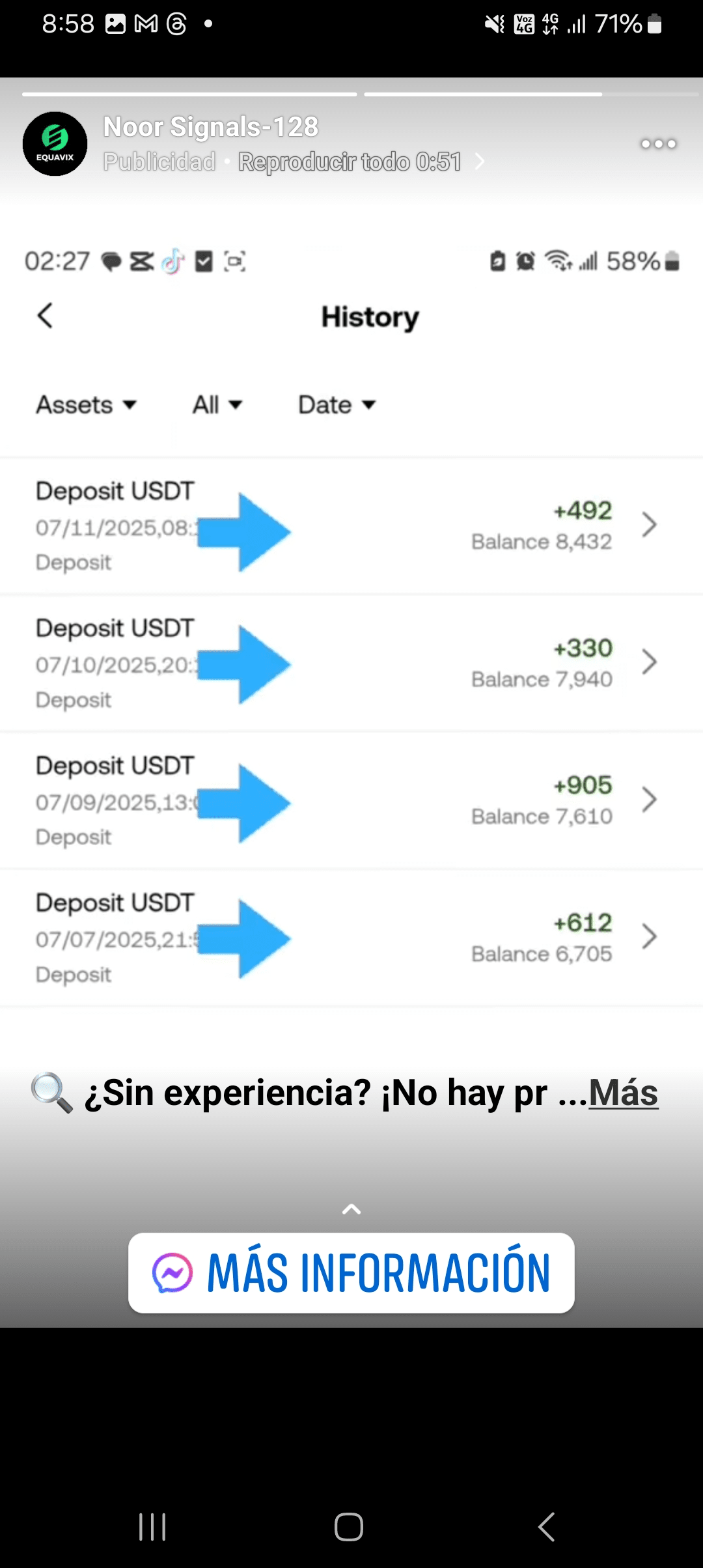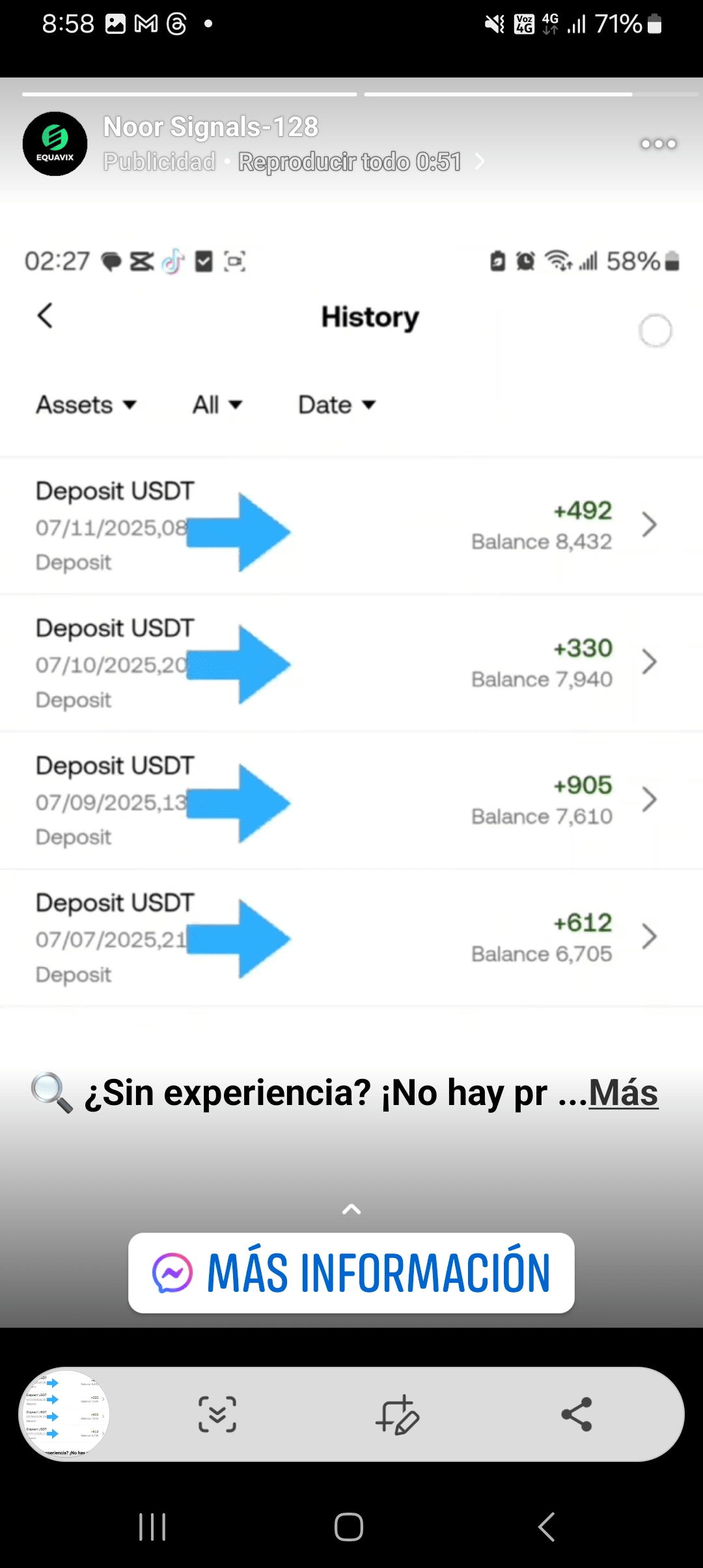 Das ist eine gültige Beobachtung. Normalerweise würde eine Handelsignalplattform Gewinne oder Verluste aus erfolgreichen oder fehlgeschlagenen Trades basierend auf ihren Signalen zeigen. Dass nur Einzahlungen in USDT angezeigt werden, deutet darauf hin, dass dieser Abschnitt von "Verlauf" Einnahmen von Mitteln aufs Konto registriert, nicht unbedingt Handelsgewinne. Das könnte darauf hindeuten, dass das Bild sich darauf konzentriert, die Finanzierungsaktivität des Nutzers zu zeigen, nicht die Leistung der Signale. Dies könnte jedoch verwirrend oder wenig transparent sein, wenn das Ziel darin besteht, die Signale als Gewinnquelle zu bewerben.