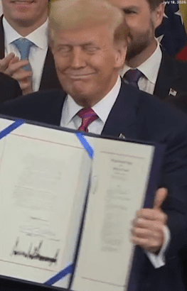 $TRUMP US-Präsident Donald Trump unterzeichnete am Freitag ein neues Regelwerk, das sich an eine bestimmte Art von Kryptowährung richtet, was einen bedeutenden Schritt für eine Branche darstellt, die stark in den Erwerb von Legitimität und politischem Einfluss investiert hat.#GENIUSAct