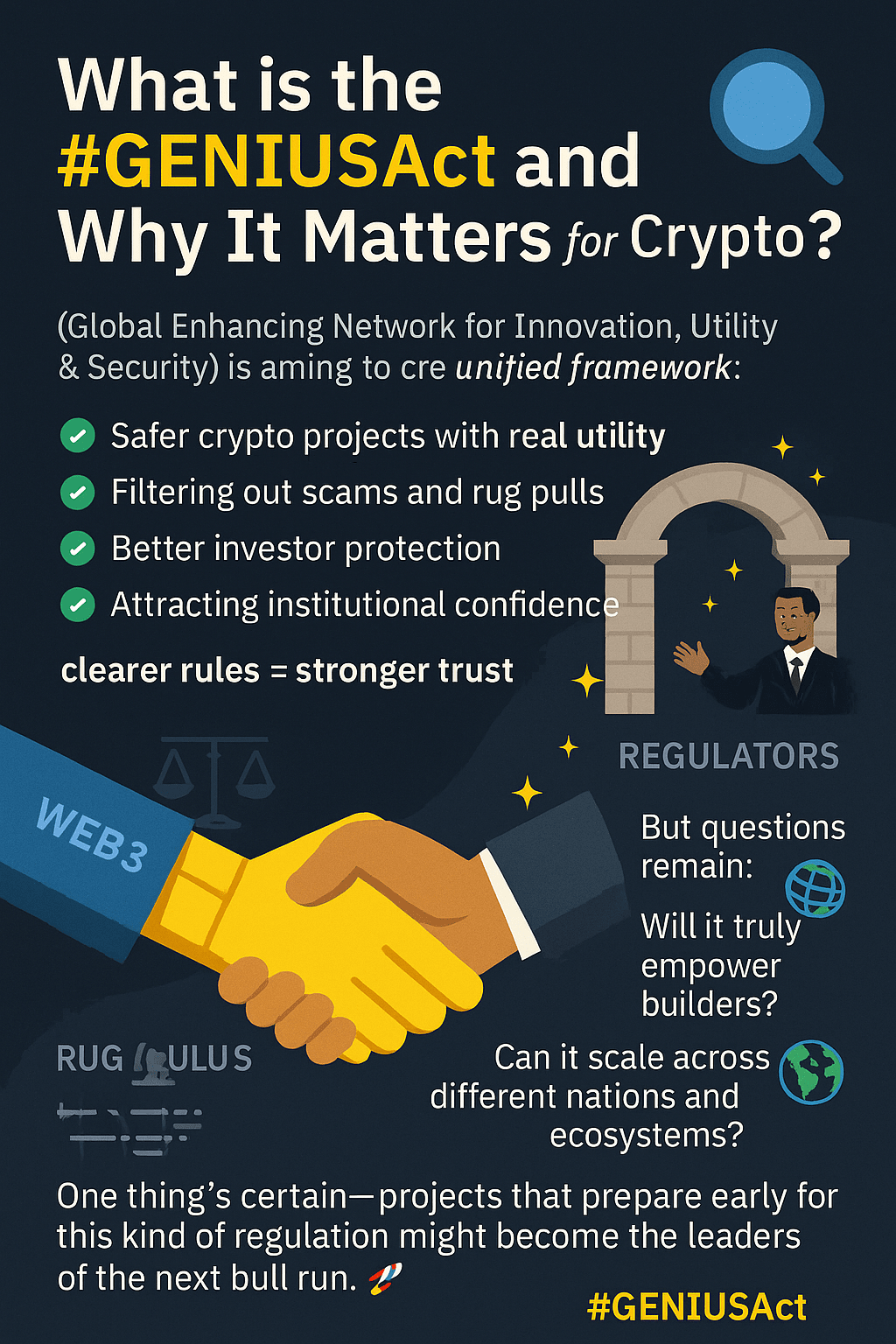 Anstatt das Wachstum zu ersticken, könnte das GENIUS-Gesetz die Brücke 🌉 zwischen Web3-Entwicklern und Regulierungsbehörden werden — und so Innovation verantwortungsvoll gedeihen lassen.