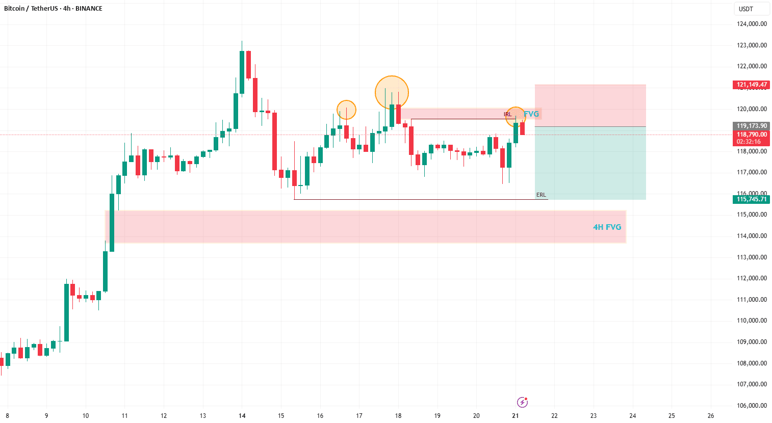 Ich erwarte eine bärische Reaktion auf kurze Sicht, wobei BTC die Verkaufsseitige Liquidität um $115.800 anvisiert. Diese Bewegung sollte auch die 4H FVG füllen und den Boden für einen möglichen Bounce und einen weiteren Versuch am ATH bereiten. 🚪 Behalten Sie diese Niveaus im Auge, da sie entscheidend für die nächste große Bewegung sein werden!
