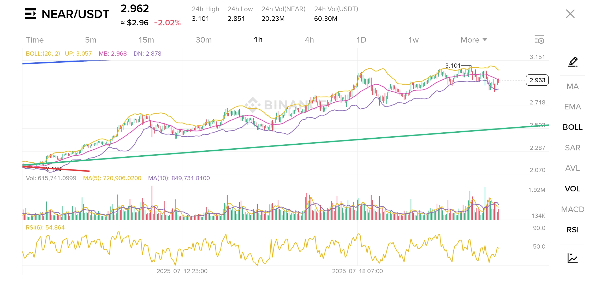 Aktueller NEAR-Preis: $2.962 (wie in der oberen linken Ecke angezeigt).