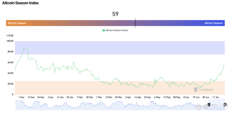 4/➫ The Altseason Index jumped from 36 to 59 in just a few days