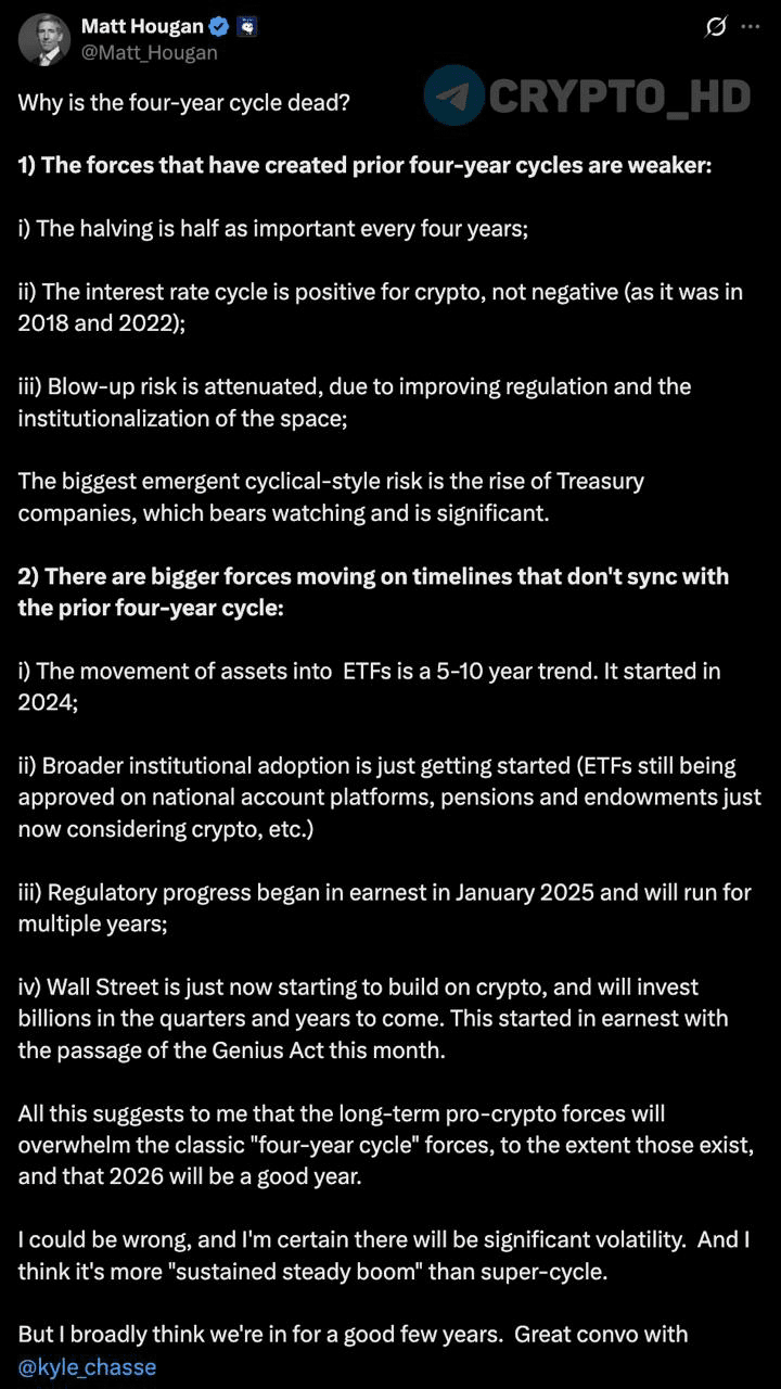 Nach dem CEO von CryptoQuant hat auch der Investmentdirektor von Bitwise erklärt, dass das klassische Modell der BTC-Zyklen an Relevanz verliert: