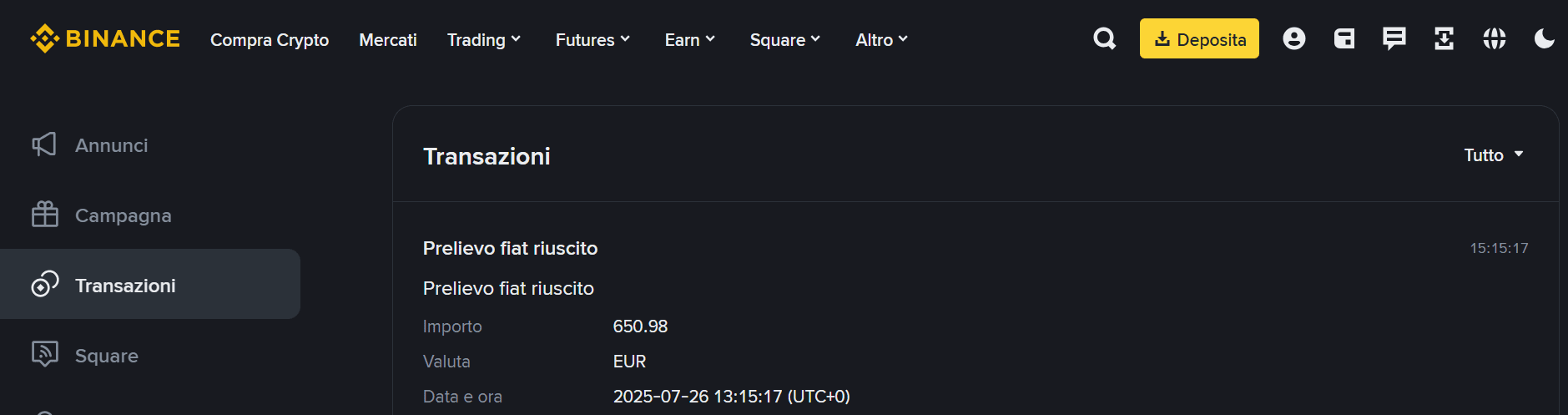 Ich wollte meine äußerst positive Erfahrung diesmal (nach dem gescheiterten Vorfall mit Revolut) mit einer Fiat-Abhebung, die ich heute von Binance auf mein Poste.it-Konto vorgenommen habe, mit euch teilen.