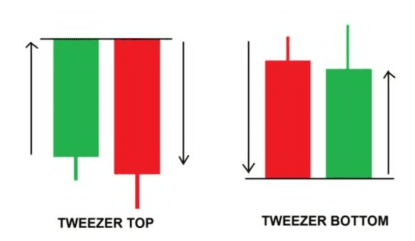 Es tritt am Ende eines Aufwärts- oder Abwärtstrends auf und signalisiert eine Trendwende. Zwei identische Kerzen mit unterschiedlichen Farben repräsentieren die Zange.