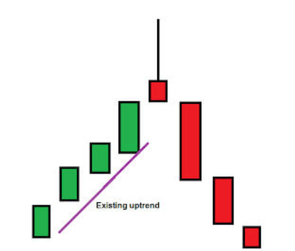 Es ist ein bärisches Umkehrmuster, das nach einem Aufwärtstrend erscheint. Es zeigt einen potenziellen Verkaufsdruck an. Es hat einen langen Docht auf der Oberseite und einen kleinen Körper.