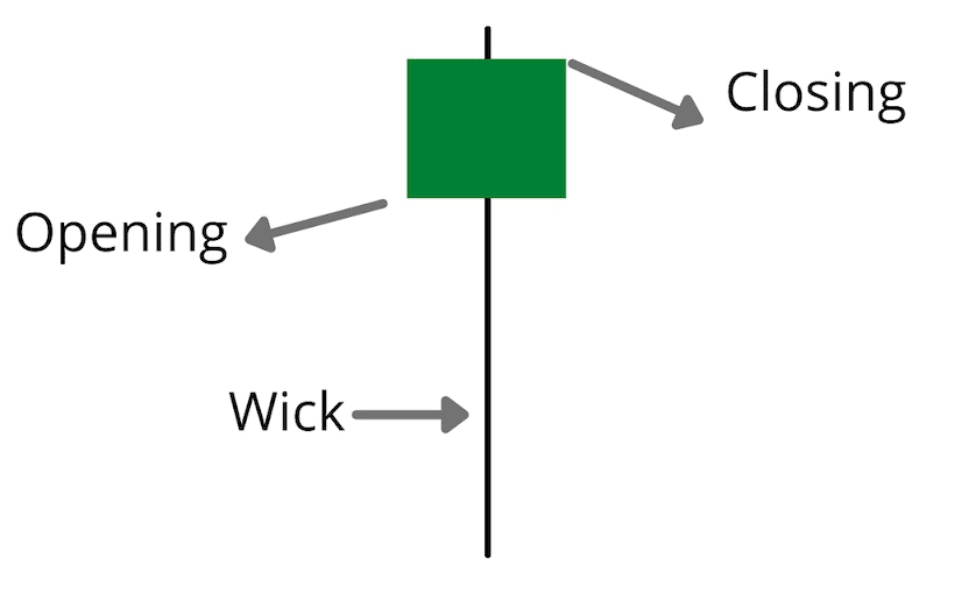 Ein Kerzenmuster zeigt die Preisbewegung über einen bestimmten Zeitraum. Es besteht aus vier Teilen: