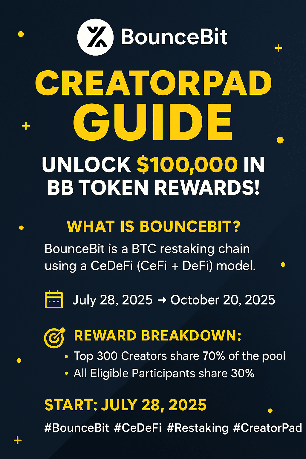 BounceBit ist nicht nur eine weitere Blockchain – es ist eine BTC-Restaking-Kette, die ein einzigartiges CeDeFi-Modell (CeFi + DeFi) verwendet. Mit CreatorPad auf Binance Square bist du eingeladen, zu erstellen, dich zu engagieren und zu verdienen!