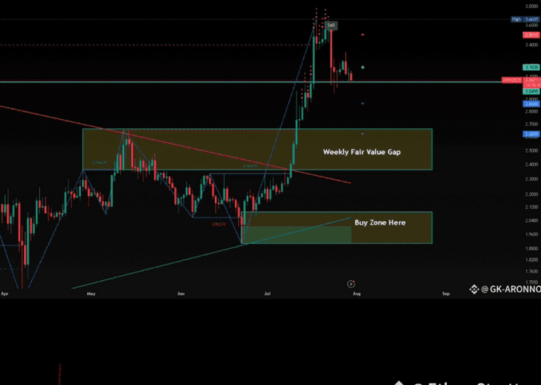 Im Gegensatz dazu skizziert GK-ARONNO einen vorsichtigeren Weg. Seine Analyse deutet darauf hin, dass XRP bis Ende 2025 mit einer erweiterten Konsolidierung oder Korrektur konfrontiert sein könnte, wobei eine mögliche Erholung es 2026 in den Bereich von 12–15 $ bringen könnte. Sein Ausblick umfasst einen kurzfristigen Rückgang vor einer längerfristigen Rallye.