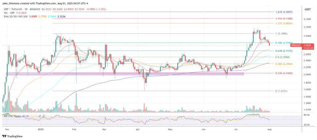 Zum Zeitpunkt der Presse war XRP bei 2,92 $.
