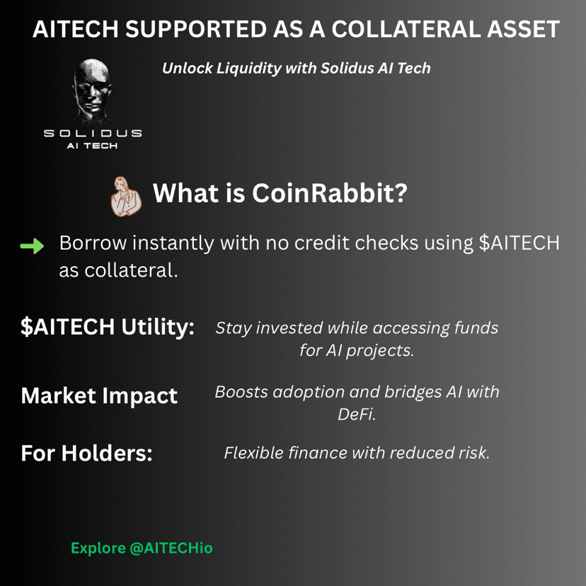 Der Web3-Bereich hat gerade einen Schub erhalten, und @AITECHio steht an der Spitze. Der $AITECH-Token von Solidus AI Tech wurde als Sicherheit bei CoinRabbit akzeptiert, was einen entscheidenden Schritt von einem einfachen Token-Projekt hin zu einem produktiven Vermögenswert im DeFi-Ökosystem darstellt. Dieser Schritt eröffnet neue Möglichkeiten für Halter, Entwickler und die gesamte Community. Lassen Sie uns das genauer analysieren.