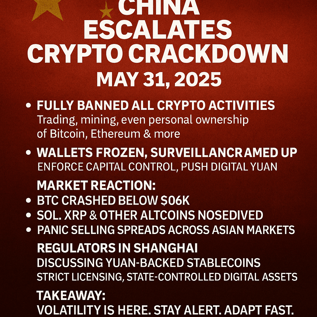 Am 31. Mai 2025 hat China ALLE Krypto-Aktivitäten vollständig verboten — Handel, Mining, sogar den persönlichen Besitz von Bitcoin, Ethereum & mehr.