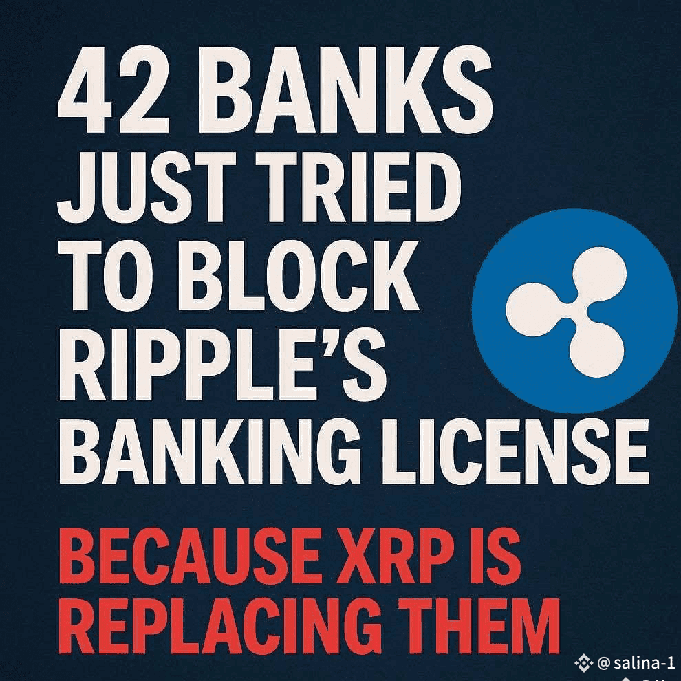 Ripple (du weißt schon, die Krypto XRP) will eine echte offizielle Bank in den USA werden. Ergebnis? 42 der größten US-Banken haben "STOP" gesagt und tun alles, um das zu blockieren.