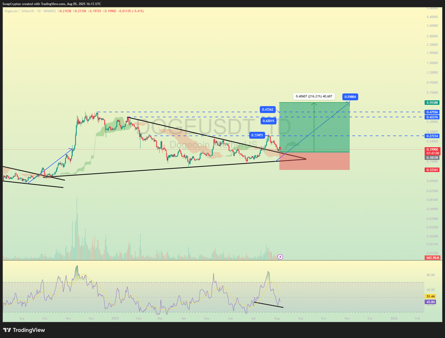 Dogecoin springt von wichtiger Unterstützung ab und bildet ein starkes bullisches Setup innerhalb eines symmetrischen Dreiecks. Der RSI zeigt eine bullische Divergenz und der Preis reagiert gut auf die Trendlinie – was auf eine potenzielle Umkehr hinweist. Das Volumen nimmt zu und das Momentum baut sich auf. Dies könnte die frühe Phase eines großen Ausbruchs sein, ähnlich wie bei der vorherigen Rallye.