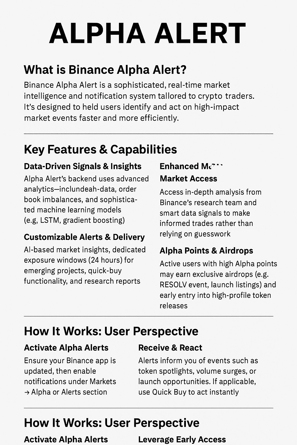 TL;DR: Binance Alpha Alert ist ein leistungsstarkes Tool, das Händlern einen Vorteil mit Echtzeit-Intelligenz, anpassbaren Benachrichtigungen, frühzeitiger Projektpräsentation und potenziellen Belohnungen bietet - während es ein intelligentes Risikomanagement und eine sorgfältige Strategie erfordert.