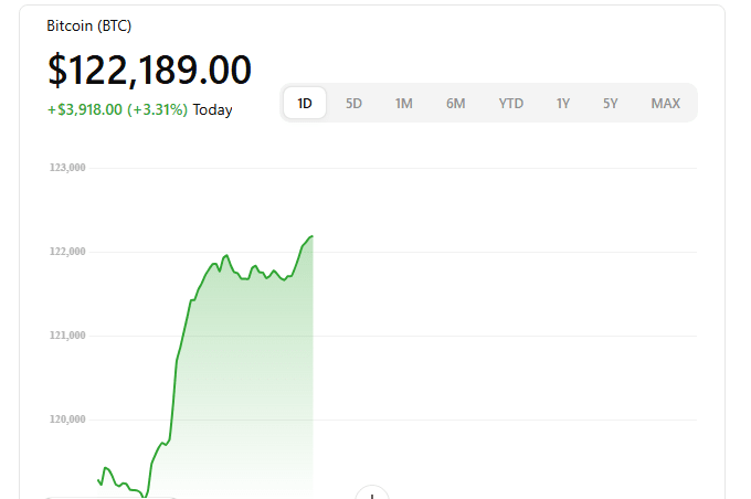 🚀Bitcoin handelt im Bereich von $122.000,