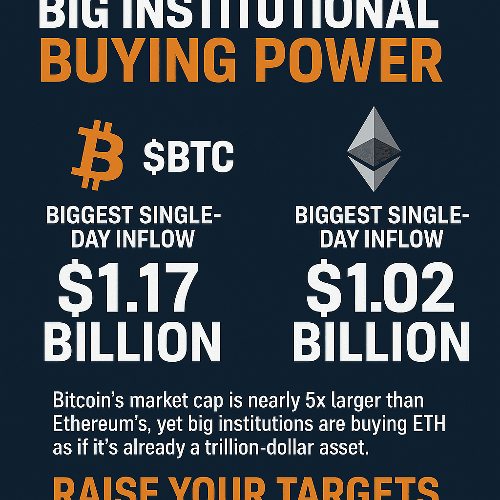 📊 Die Marktkapitalisierung von Bitcoin ist fast 5× größer als die von Ethereum, dennoch kaufen große Institutionen ETH, als wäre es bereits ein Billionen-Dollar-Asset.