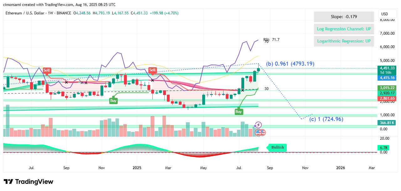 Implikation: Trend bleibt bullisch, es sei denn, ETH verliert die Unterstützung bei 3,900–4,050.