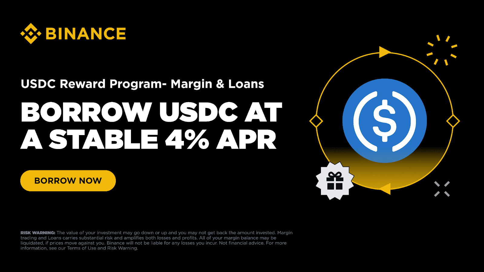 Nutzer, die frische Mittel (oder aktuelle und ausstehende Kredite) von USDC aus Binance Loans leihen, können während des Aktionszeitraums Kreditkonditionen von bis zu 4% APR genießen.