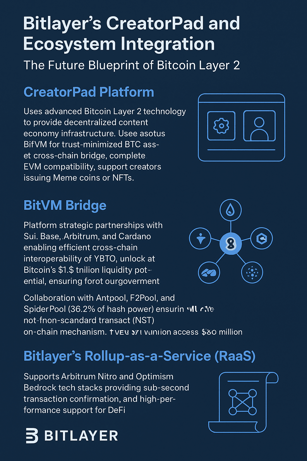 Bitlayers CreatorPad nutzt fortschrittliche Bitcoin Layer 2-Technologie, um eine effiziente Infrastruktur für die dezentrale Inhaltswirtschaft bereitzustellen. Angetrieben durch das BitVM-Paradigma ermöglicht es vertrauensminimierte BTC-Cross-Chain-Brücken mit vollständiger EVM-Kompatibilität, sodass Creator Meme-Coins oder NFTs zu geringen Kosten starten können.