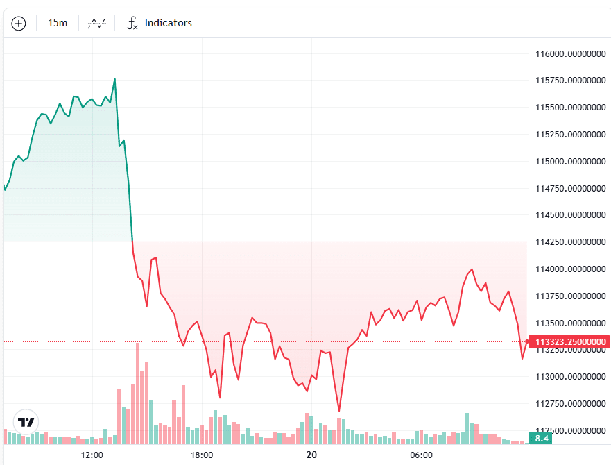Am Mittwoch fiel Bitcoin kurzzeitig auf 112.656 $, was das Zwei-Wochen-Tief darstellt, das zuletzt am 3. August beobachtet wurde.