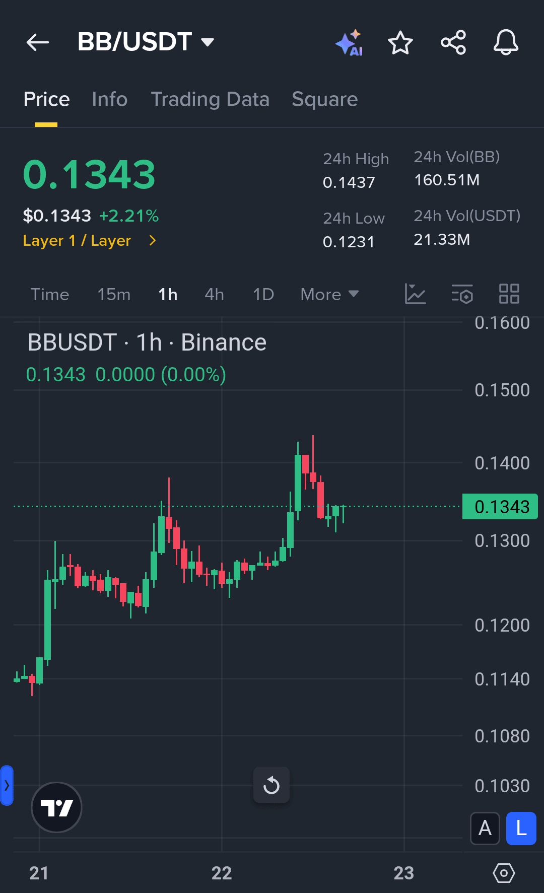 $BB zeigt höhere Tiefs, nachdem es 0.123 berührt hat. Käufer sind aktiv, und der Preis hält sich über 0.132. Wenn der Schwung anhält, kann bald ein Druck in Richtung 0.141–0.145 erfolgen. Achten Sie auf starkes Volumen, um den Ausbruch zu bestätigen.