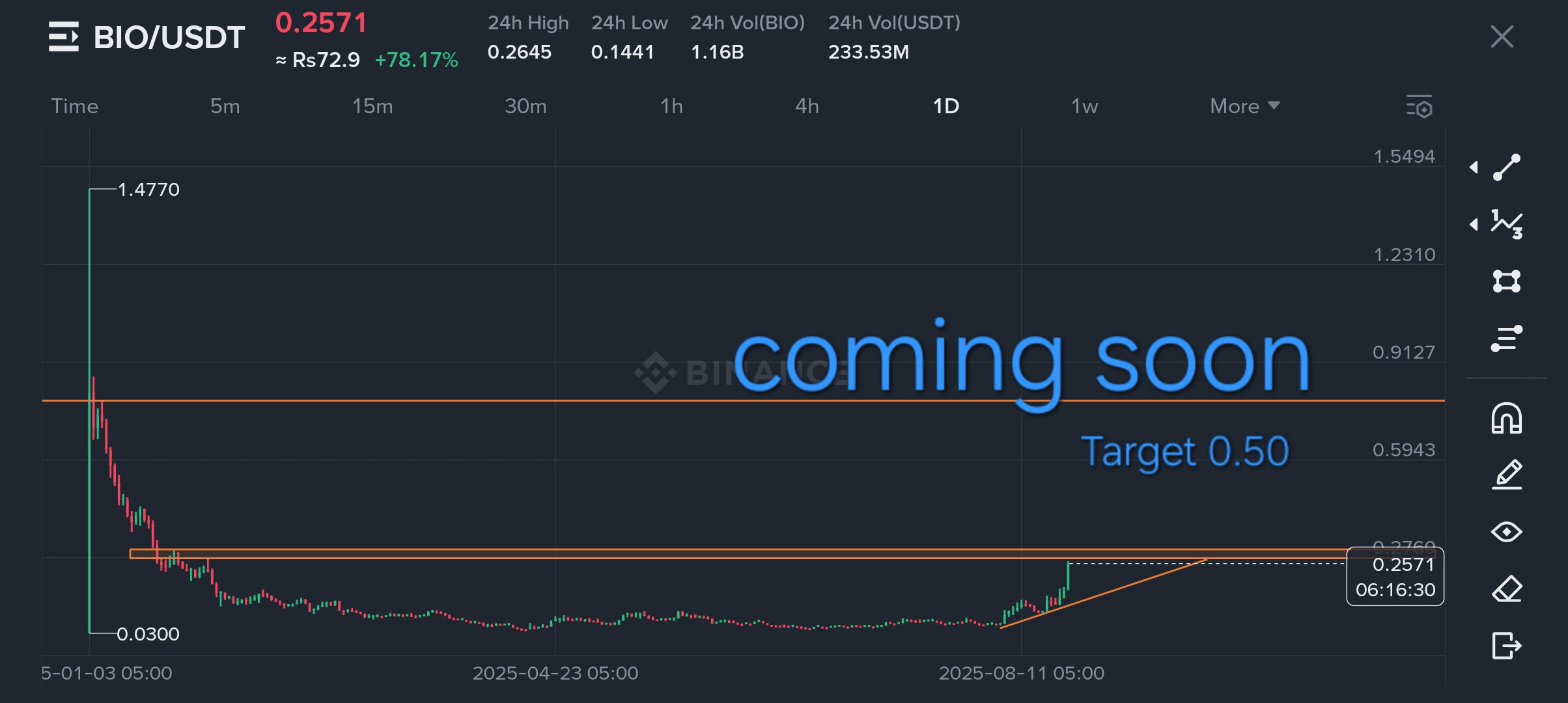 3. Durchbruch eines Schlüsselniveaus: Der Preis berührt oder hat das 24-Stunden-Hoch (0.2573) erreicht (Bild 2 zeigt 0.2571). Dies ist ein weiteres positives Zeichen.