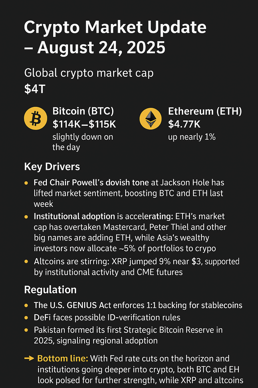 Bitcoin (BTC) wird bei etwa 114.000–115.000 $ gehandelt, leicht im Minus für den Tag.