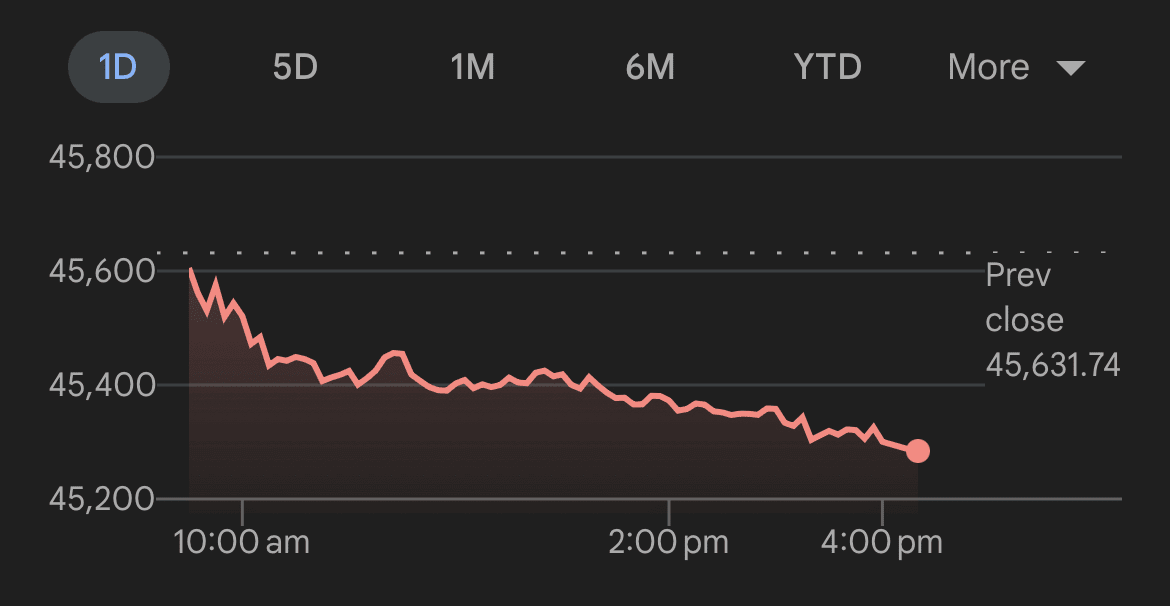 Alle drei großen Indizes sind derzeit im Minus, wobei die Nasdaq-Futures um 0,13 % oder 31 Punkte auf 23.539,50 fallen, während die S&P 500-Futures um 0,13 % und 8,50 Punkte auf 6.474,50 fallen, gefolgt von den Dow Jones-Futures bei 45.664,00, die um 0,11 % oder 51 Punkte fallen.