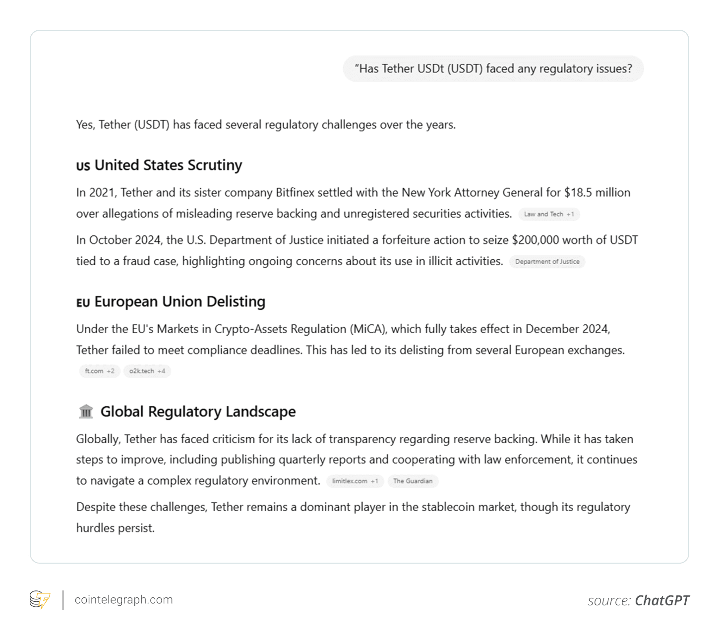 „Hat Tether USDt USDT 1,00 $ irgendwelche regulatorischen Probleme gehabt?“
